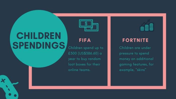 보고서에 따르면 아이들이 게임에 소비하는 액수는 매년 증가하는 추세로, 일부 지출 규모는 연간 400파운드(약 45만 원)이상으로 나타났다. 이와 관련 현지 IT 매체 PC 매거진은, 친구들과 온라인상의 낯선 동료들의 압박, 그리고 유명한 게임 유튜버들의 영향은 아이들이 게임 내에서 돈을 쓰라는 압력을 느끼게 만드는 모든 요인이라고 지적했다.