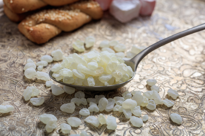 특이한 별명이 많은 매스틱은 매스틱 나무에서 얻은 수액이다. 1년에 한 번 채취가 가능하며, 150~180g 정도 소량의 수액만을 얻을 수 있어 구하기 어려운 재료다. 매스틱의 맛은 초반엔 쓴맛을 느끼고 매스틱향이 함께 느껴진다. 5천 년 전부터 그리스는 위 관련 증상 치료를 위해 활용할만큼 위 기능 개선을 돕는다.