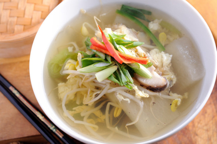 백종원 콩나물국 레시피 준비로 다시육수 만드는법을 설명한다. 먼저 파나 파뿌리, 다시마, 멸치와 말린생선 황태 등으로 육수만들기를 한다. 콩나물 손질법은 콩나물대가리(콩나물머리)를 떼지 않고 상한 부분만 제거한다. 끓는 육수에 콩나물 데치기 한 뒤 불끈 채 뚜껑을 덮어둔다. 삶은 콩나물은 콩나물국 양념장 재료를 넣어가며 끓이고 간을 한다. 대파나 청양고추를 어슷썰기해서 투하한다. 콩나물국 끓이는법 양념장 재료는 국간장과 새우젓, 다진 마늘로 단출해 보이지만, 시원한 맛을 낸다. 백종원 김치콩나물국으로 김치를 추가하면 더욱 얼큰한 국물 메뉴가 완성된다. 김수미 콩나물국 레시피는 전주식 콩나물국으로 다진마늘, 새우젓, 고춧가루를 사용해 날계란을 풀면 더욱 맛이 좋다.
