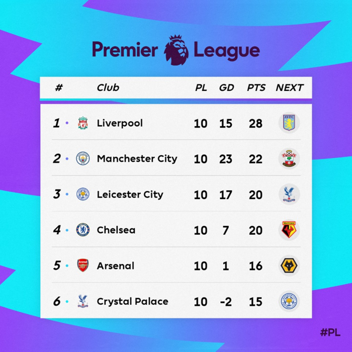 2019-2020 프리미어리그, 10번의 경기 결과 1위는 단연 리버풀이다. 리버풀은 1번의 무승부를 제외하면 모두 승리를 거둬 승점 28점, 독보적인 1위를 유지하고 있다. 리버풀의 무서운 연승에 멈춘 것은 맨유였다. 지난 10월 21일 경기에서 리버풀을 상대로 1대1 무승부를 얻어낸 맨유는 승점 13점 현재 7위다. 2위는 맨시티, 3위는 레스터, 4위 첼시, 5위 아스날, 6위 팰리스, 8위가 셰필드다. 토트넘의 프리미어리그 순위는 본머스, 웨스트햄 밑인 11위다.