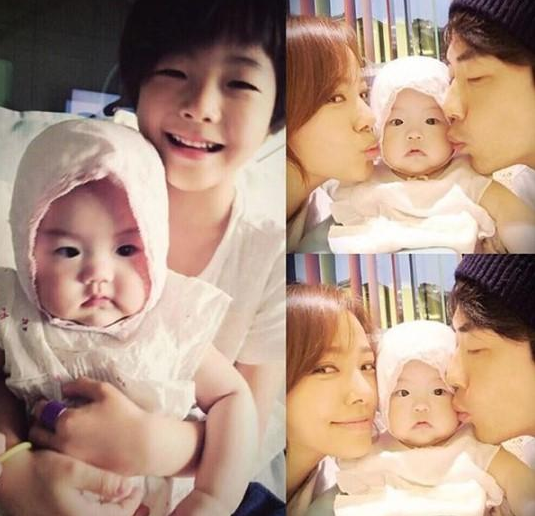 사진 속에는 똘망똘망한 붕어빵 미모의 딸 리호를 품에 안은 아들 룩희의 모습도 담겨 있다.