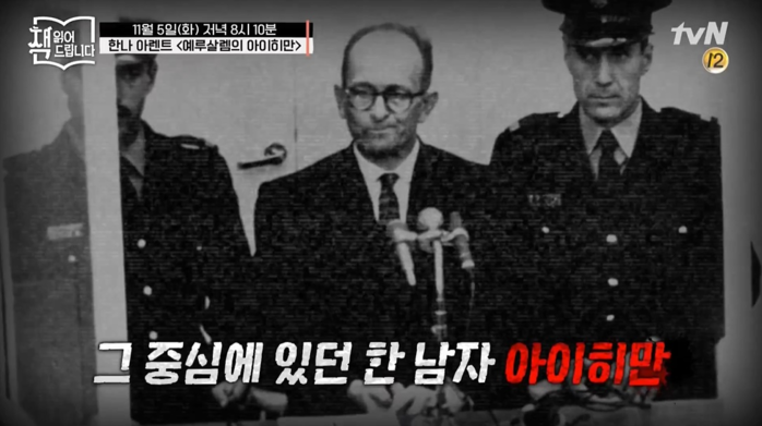도서 '예루살렘의 아이히만'이 tvN '책 읽어드립니다'에서 소개돼 누리꾼들의 주목을 받고 있다.