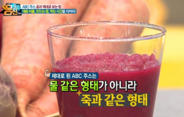 세계 각국에서 ‘기적의 주스’라 불리만큼 다이어트 또는 건강을 위해 붐이 일고 있는 ABC주스 만드는 법 또한 공개했다. 전문가는 ABC주스를 만들 때 착즙기 사용은 권장하지 않는다고 언급했다.