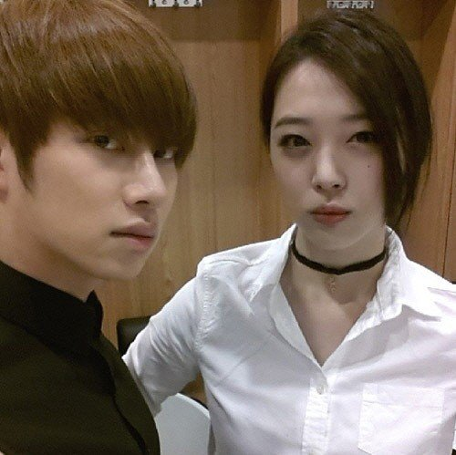 김희철은 과거 자신의 인스타그램에 설리와 함께 장난스런 표정을 하고 찍은 사진을 올렸다.