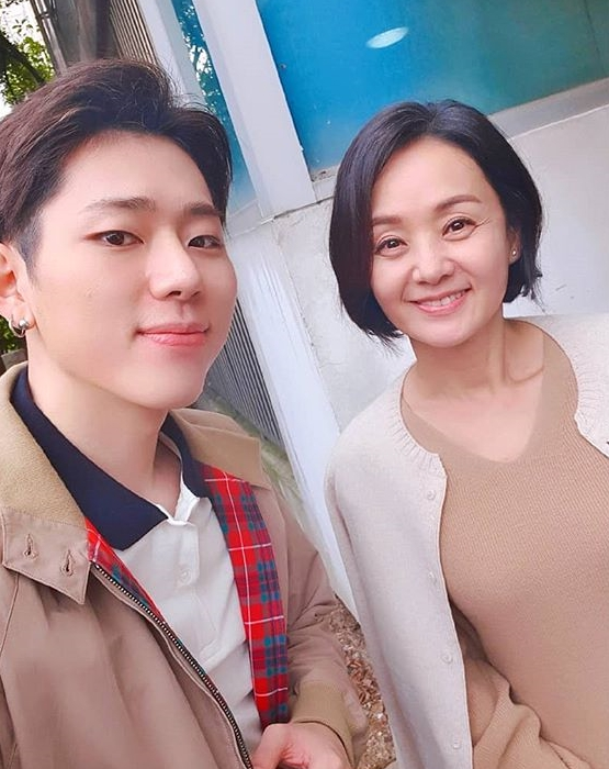 공개한 사진에는 지코가 배우 배종옥과 나란히 서서 카메라를 응시하고 있다.