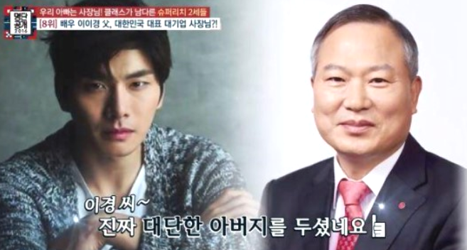 이이경 아버지는 LG이노텍 사장, LG화학 전지사업본부장 및 사장 등을 역임한 기업인으로 유명하다.