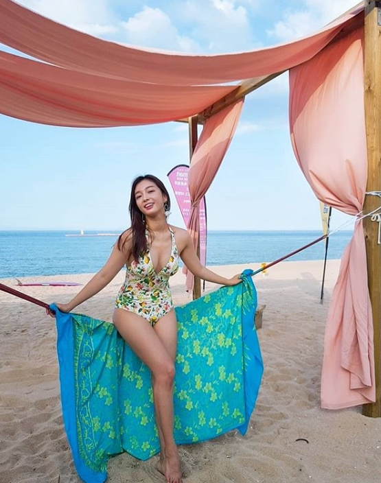 공개한 사진에는 이상미가 속초 바다에서 수영복을 입은채 포즈를 취하고 있다.