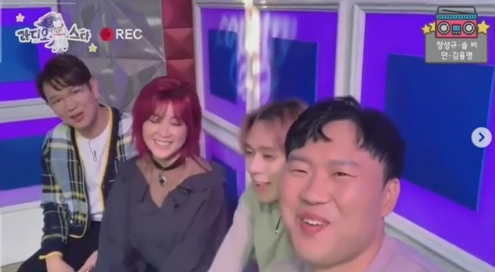 공개한 영상에는 솔비가 '라디오스타'에 함께 출연하는 장성규, 던(DAWN), 김용명과 이야기하는 모습이 담겨져 있다.