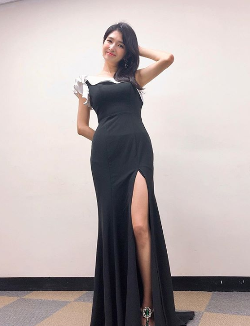 김경란은 자신의 인스타그램을 통해 검정색 드레스를 입은 모습을 올렸다.