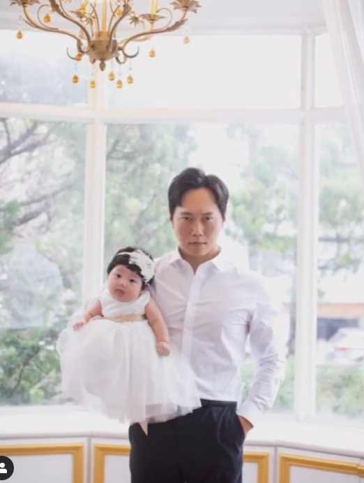 딸아이를 안고 있는 송진우는 카메라를 강렬한 눈빛으로 쳐다보고 있다.