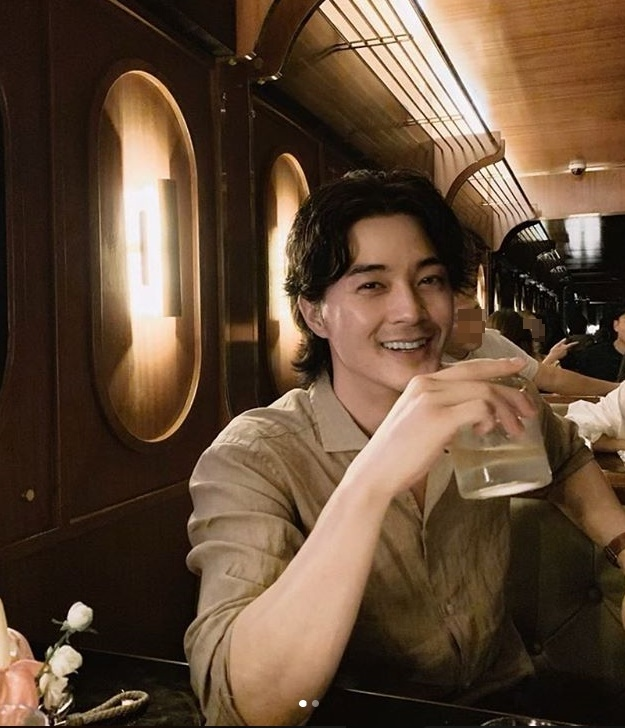 공개한 사진에는 김지훈은 유리잔을 든채 카메라를 응시하고 있다.