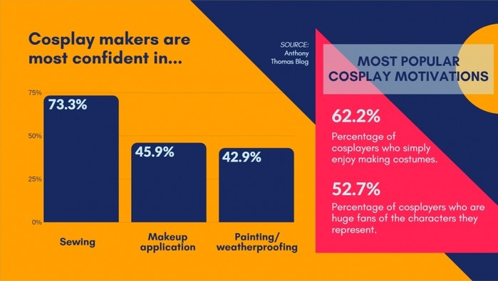 코스프레는 가발에서부터 옷, 신발, 액세서리 등 캐릭터와 비슷해 보이기 위한 모든 요소를 준비해야 하기 때문에 준비하는 데 시간이 오래 걸리고 힘든 일이지만 만족도는 매우 높다.