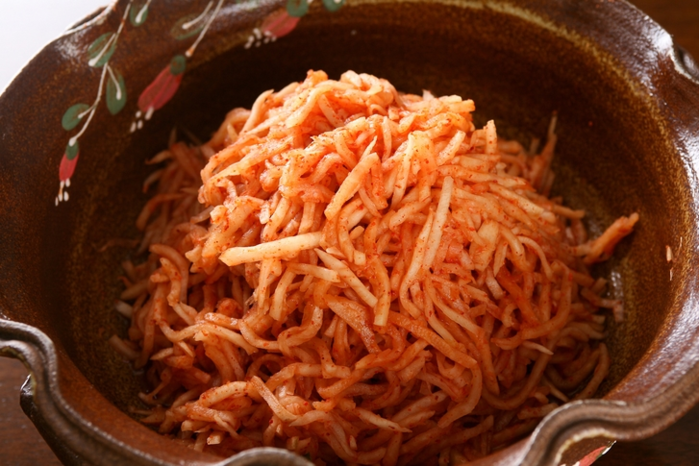 재료 : 무, 고구마, 고춧가루, 꽃소금, 배 식초, 생강즙, 설탕, 고추냉이, 부추, 통깨 등