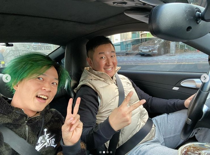 공개한 사진에는 팝핀현준이 보유한 고급 외제차와 함께 운전하는 모습이 담겨져 있다.