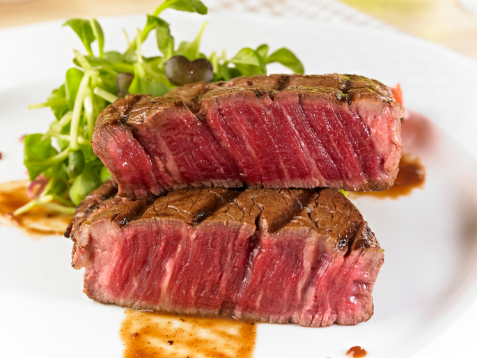 7. 소고기 스테이크를 레어, 미디움, 웰던 등 원하는 만큼 인힌 뒤 접시에 담는다.