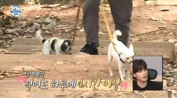 이날 방송에서 이성우는 강아지들과 오랜 시간 강아지 산책을 시켰다.