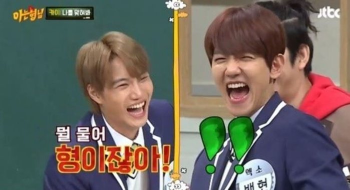이에 카이는 그를 향해 "형"이라고 짧고 굵게 답해 보는 이들을 폭소케했다.