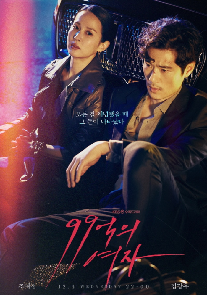 오늘 12월 4일 첫 방영되는 99억의 여자 줄거리는 희망 없이 그저 하루하루 버티며 살아가던 여자에게 주인 없이 버려진 현금 99억이 눈앞에 나타나고 이를 지키기 위해 세상과 싸우게 된다. 등장인물 정서연이 여자주인공이며 조여정이 열연한다. 정서역이라는 여자는 가난과 폭력 속에서 컸고 이는 결혼을 하고 나서도 계속됐다. 삶의 의미가 없어진 그녀에게 99억이 손에 들어온다. 한편, 또 다른 주연, 강태우. 강태우는 한 마약 사건을 조사하다 누명을 쓰고 추락한 전직 형사다. 자신의 유일한 희망인 동생 사망 소식에 진실을 알기 위해 뛰어다닌다. 강태우는 배우 김강우가 맡아 연기한다.