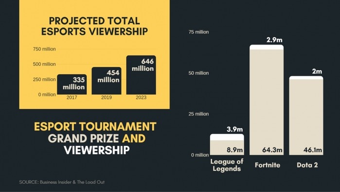 통계로 보면 현재까지 가장 많은 시청률을 기록한 e스포츠 게임은 LoL로, 가장 최근 열린 대회의 경우 무려 상금액이 894만 8,000달러에 달했다. 시청자 수는 390만 명이었다. 총 상금 규모가 가장 높은 게임은 포트나이트로, 총 상금풀이 6,433만 8,000달러에 달했다. 시청자 수는 290만 명 이상이었다. 도타2 역시 4,615만 달러의 상금풀이 책정됐으며, 200만 여명의 시청자 수를 확보했다.