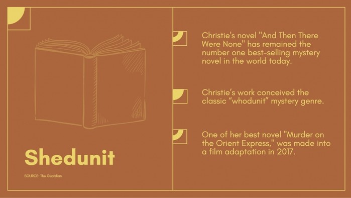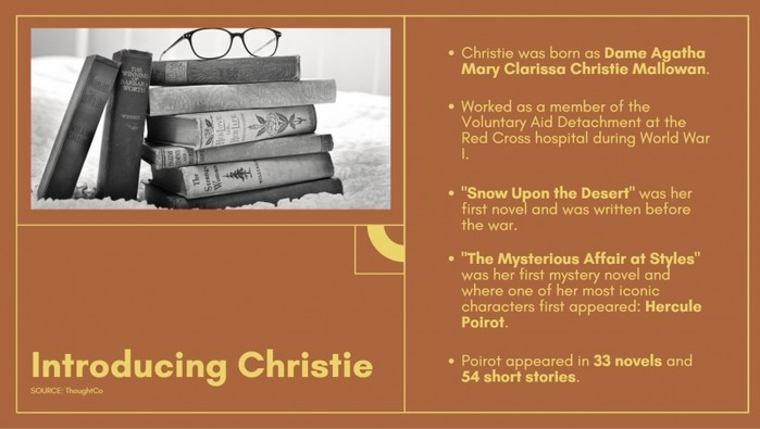 '셜록 홈즈'를 포함해 탐정 소설의 팬이었던 크리스티는 1916년부터 본격적으로 장르물에 도전하기 시작했다.