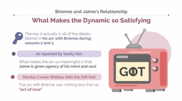 유명 TV 쇼 ‘왕좌의 게임’의 케릭터 제이미 라니스터와 타스가의 브리엔의 정서적 변화가 이야기를 더욱 풍부하고 흥미롭게 풀어나가고 있다.