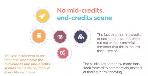 마블은 늘 독창적인 마케팅 방법으로 특별한 엔딩 크레딧과 쿠키 영상 등으로 팬들에게 재미를 선사했다. 그러나 이번 영화에서는 팬들이 온전히 마지막을 즐기도록 만든다.