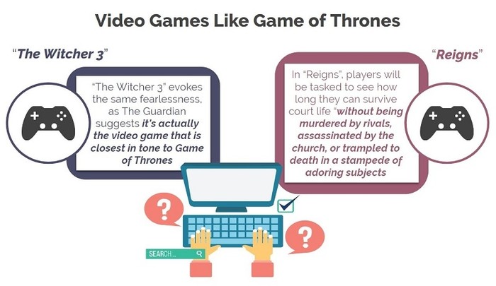 중세, 정치, 전쟁 등이 주제인 위쳐나 크루세이더 킹즈 같은 게임을 통해 왕좌의 게임의 대체자를 찾고 있는 것이다.