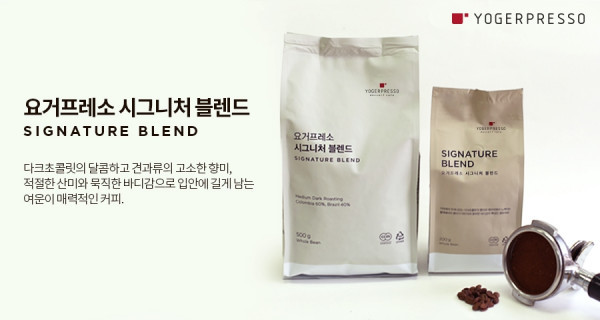 커피전문점 요거프레소는 큐그레이더와 함께 SCAA(미국스페셜티커피협회) 기준에 따라 선별된 고품질의 원두로 ‘시그니처 블렌드’를 탄생시켰다. 묵직한 바디감의 ‘콜롬비아 수프리모 후일라’, 부드럽고 밸런스가 좋은 ‘브라질 세하도’, 산미와 달콤한 향이 깃든 ‘콜럼비아 엑셀소 메델린’ 등 3가지 원두가 완벽한 조합을 이뤘다는 평을 받는다.