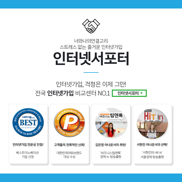 전국 공식 인터넷가입비교사이트 ‘인터넷서포터’ 관계자는 “인터넷설치사이트에서 초고속인터넷신청을 원하는 소비자들에게 SK, KT, LG 통신사별 인터넷가격비교는 물론 속도차이까지 안내 받을 수 있어 통신비를 절약하고자 하는 소비자에게 유용하다”고 전했다.
