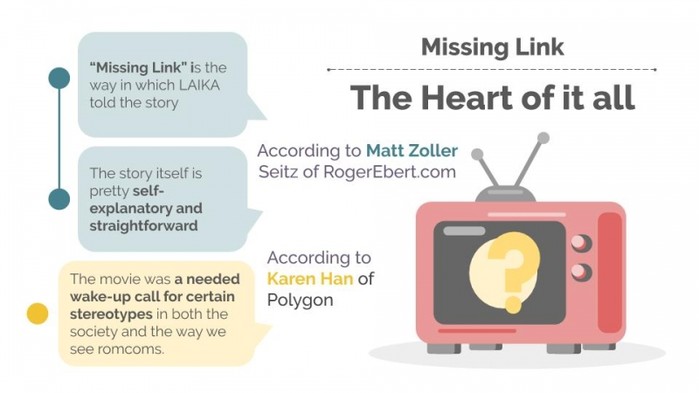 보통 애니메이션 영화는 타깃 설정이 중요하다. 오로지 어린이 관객들만을 사로잡을 것이냐, 어린이 관객과 어른 관객을 모두 사로잡을 것이냐, 아니면 어른 관객들만을 위한 애니메이션을 만들 것이냐를 결정해야 한다. 오늘날 성공한 애니메이션들은 대부분 어린이 관객과 어른 관객을 모두 사로잡았다. 그러나 ‘미싱 링크’는 그러지 못했다.
