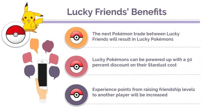 행운의 친구는 이름처럼 게임 내 특정 상호 작용을 통해 독점적인 보너스를 얻을 수 있는 친구를 말한다. 행운의 친구가 있으면 포켓몬을 얻을 확률 등이 올라간다.