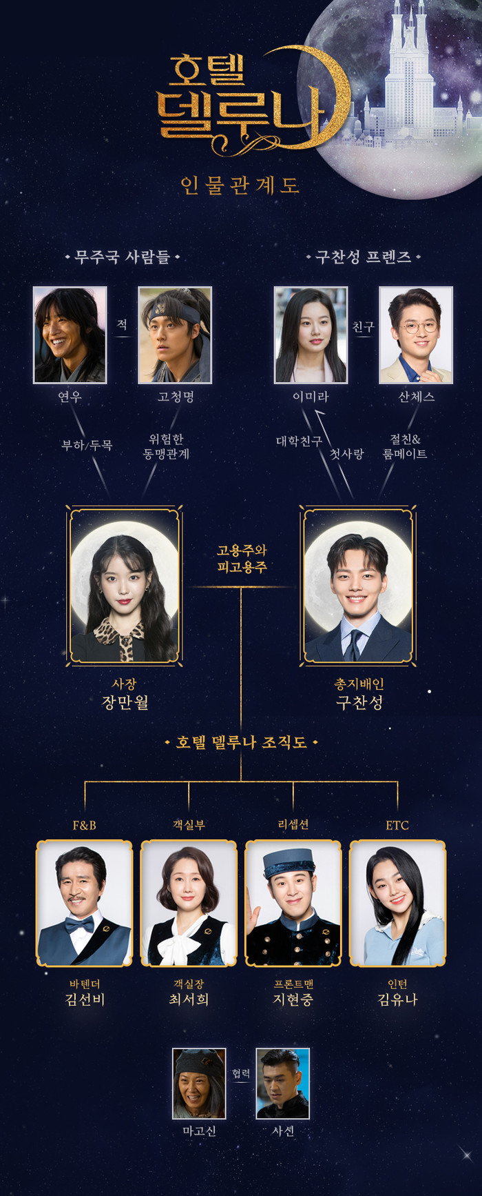 드라마 ‘호텔 델루나’는 엘리트 호텔리어가 운명적인 사건으로 호텔 델루나의 지배인을 맡게 되면서 달처럼 고고하고 아름답지만 괴팍한 사장과 함께 델루나를 운영하며 생기는 특별한 이야기를 담은 장르물이다.