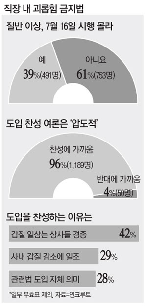 오늘(16일)부터 직장 내 괴롭힙 금지법이 시행돼 직장인들 사이에서 큰 화제를 모으고 있다.