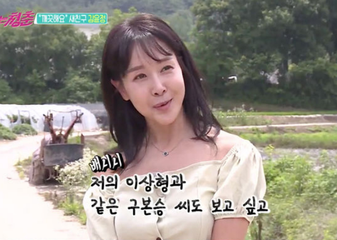 그러면서 이상형으로 구본승을 언급하며 자신을 데리러 온 구본승에게 활짝 미소 지어보였다. 김윤정은 과거 '뽀뽀뽀'의 뽀미 언니로 활약하는 등 수많은 드라마와 CF에 출연하며 청순 배우로 인기를 끈 바 있다.