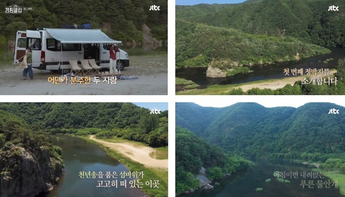 지난 14일 JTBC 예능 ‘캠핑클럽’이 첫 방송을 했다. 이날 핑클 멤버 이효리, 옥주현, 이진, 성유리는 14년 만에 완전체로 뭉쳤고 캠핑카를 타고 떠난 곳은 전북 진안으로 향했다. 이들의 첫 캠핑장소는 금강 상류 지역에 자리한 ‘용담섬바위’였다.