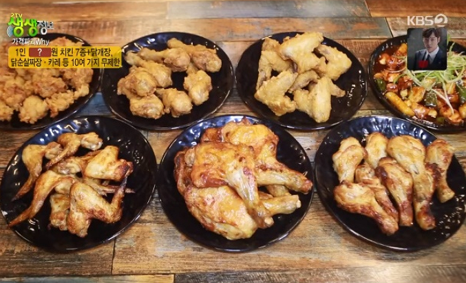해당 치킨집에서는 닭다리, 닭날개, 순살 프라이드, 불닭바비큐 등의 치킨 7가지를 무한 리필로 즐길 수 있다. 여기에 닭가슴살 짜장, 카페, 닭개장, 샐러드 등 이색 메뉴도 무제한이다.