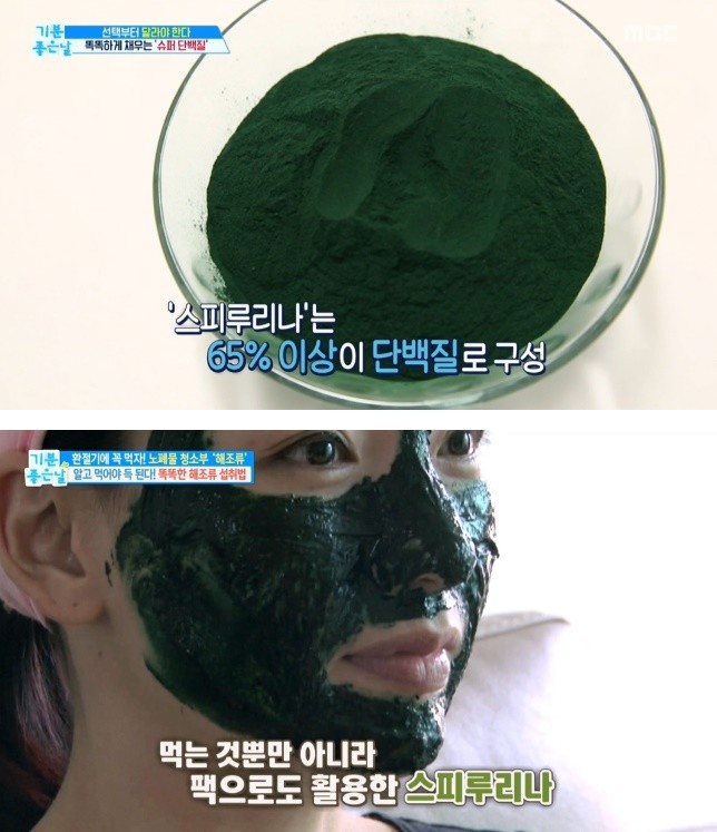 스피루리나 속 칼슘은 우유의 10배다. 이어 카로틴은 당근의 20배, 철분은 시금치의 50배, 단백질은 계란의 5배를 자랑한다. 때문에 단기간 다이어트를 할 때 영양 결핍을 예방하며 면역력 유지에 도움이 되고 푸석한 피부개선에도 효과적이다. 스피루리나 팩은 스피루리나와 요구르트를 섞은 후 얼굴에 면포를 올리고 스피루리나 팩을 얹으면 간편하게 완성된다. 하지만 스피루리나를 과다 섭취할 경우 두통, 구토, 복통, 설사 등의 부작용이 따를 수 있다. 또한 스피루리나 단백질 함유량이 칼슘의 흡수를 방해할 수 있다.