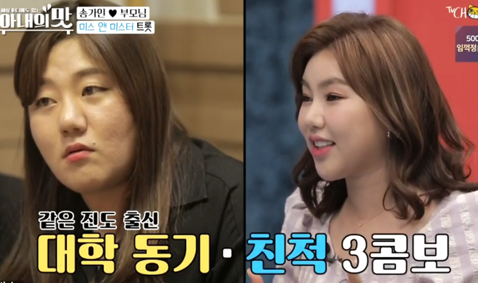 조유아는 송가인과 음악극과 중앙대학교 동기로 같은 진도 출신이자 친척이다. 앞서 조유아는 ‘아내의맛’ 첫 출연부터 ‘엿타령’을 구수한 목소리로 불러내 시청자들의 호응을 받았다.
