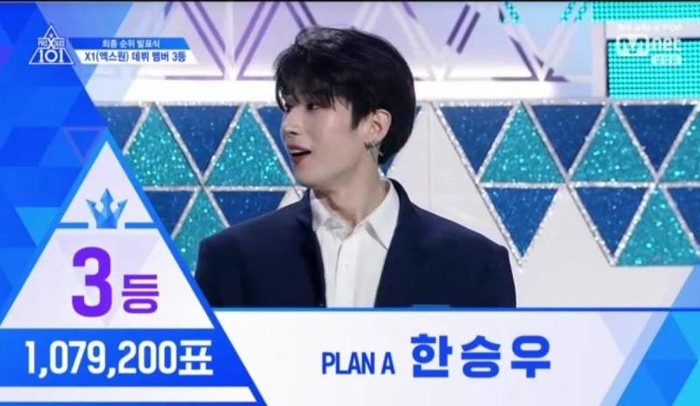 현재 '프로듀스X101' 데뷔조인 '엑스원(X1)'에 들어갈 연습생들이 차근 차근 발표되고 있다. 현재 3위는 한승우, 4위는 10주차 순위 8등에서 4위로 올라간 송형준이다.