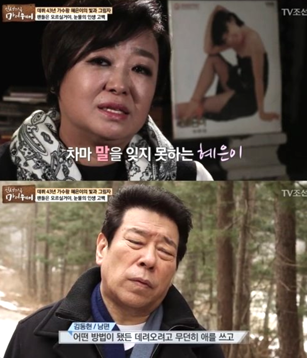 이날 혜은이는 “돈 벌기 위해 악착같이 일했다. 돈 주는 데면 제가 싫은 데 가서라도 했다. 당시 방송할 수 있는 곳이 없어서, 노래를 부르라고 하는 곳이면 어디든 갔다"며 “너무 비참했다”고 힘들었던 당시를 털어놨다.