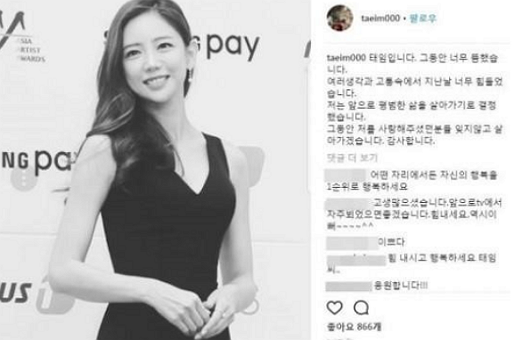 당시 이태임은 인스타그램 계정 삭제 전 “그동안 너무 뜸했다. 여러생각과 고통속에 지난날 너무 힘들었다. 앞으로 평범한 삶을 살아가기로 결정했다. 그동안 저를 사랑해주셨던 분들 잊지않고 살아가겠다”라며 심경을 털어놨다.