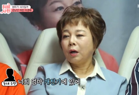 이날 이경애는 과거 노름에 빠진 아버지를 회상하며 "어머니가 자살하려는 모습까지 목격했다"고 말해 주위를 깜짝 놀라게 했다. 이어 "그때 내 나이가 12살이었다. 어머니가 목을 매는 모습까지 봤다. 그때 내가 엄마를 붙잡고 ‘엄마가 내 옆에만 있으면 내가 다 알아서하겠다’고 빌었다"고 덧붙여 주위를 숙연하게 했다.