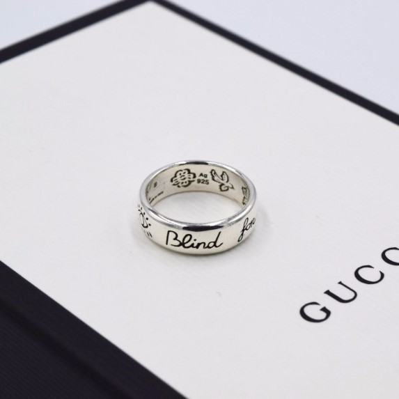 구찌 반지 블라인드포러브는 `사랑에 눈이 멀다`라는 뜻의 문구가 반지에 새겨져 있는 실버 반지다.