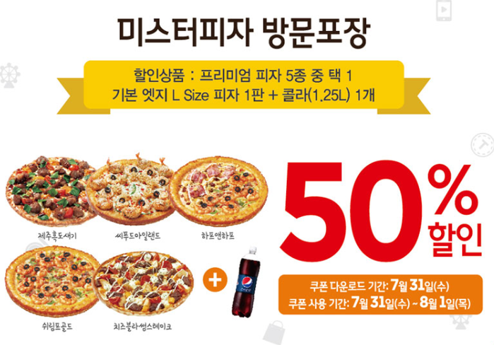 오늘(31일) 미스터피자 T멤버십 반값 할인 이벤트를 비롯해 7월 문화의날 공연 할인 소식이 전해져 화제다.