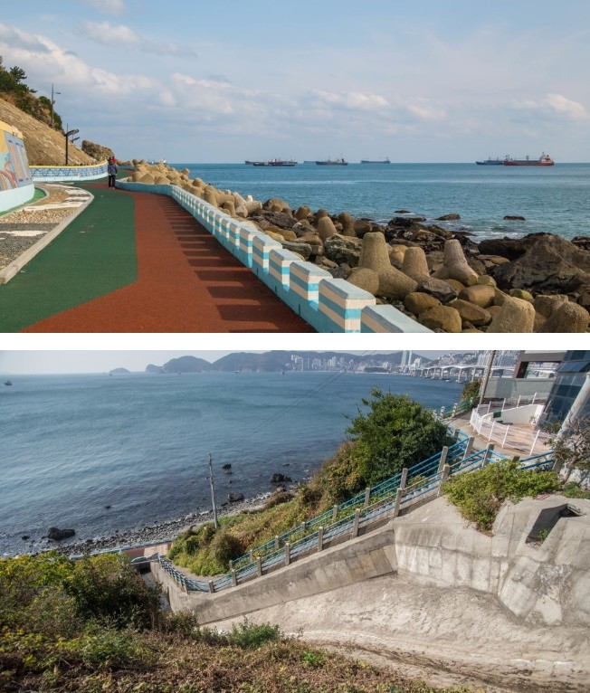 ‘부산 흰여울 문화마을’ 절영로에서 흰여울길 사이에는 세로로 14개의 골목이 나있다. 전체로 보면 여러 갈래의 샛길들이 미로처럼 얽혀있다. ‘부산 흰여울 문화마을’ 가볼 만한 곳으로는 절영해안산책로가 대표적이다. 이밖에 ‘부산 흰여울 문화 마을’의 이전의 실상을 고스란히 느낄 수 있는 맏머리 계단을 비롯해 △꼬막집 계단 △무지개 계단 △피아노 계단 △도돌이 계단 등이 산책코스로 꼽힌다.