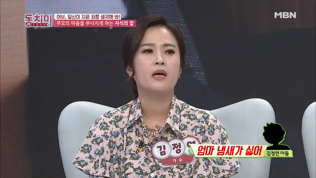 한편 가수 김정연은 늦둥이 아들에게 냄새나서 싫다는 이야기를 들었다고 전해 대중들에게 충격을 줬다.