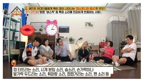 KBS2 TV 월요일 예능 프로그램 ‘옥탑방의 문제아들’에 출제된 ‘미소포니아(misophonia)’ 증상에 대한 누리꾼들의 관심이 뜨겁다.